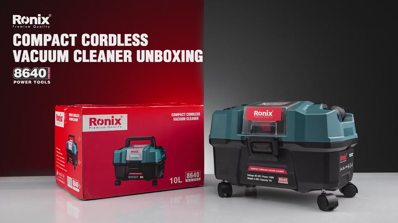 در بخش توضیحات محصول، بیشتر با مشخصات جارو شارژی کامپکت 15 لیتری 20 ولت رونیکس مدل 8640 آشنا شوید.